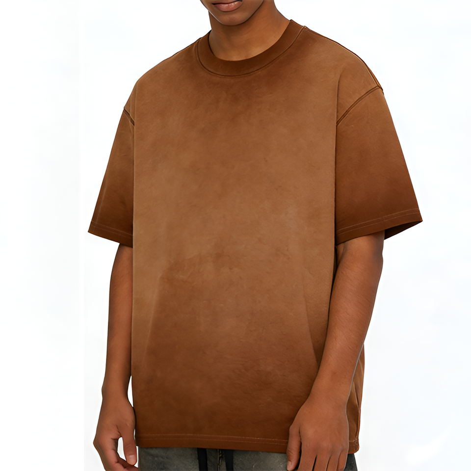 เสื้อยืดคอกลมโอเวอร์ไซส์ผู้ชายผ้าฝ้าย 100% หนัก 260 กรัม พิมพ์ลายสีสันแบบ Colorblock สไตล์ Urban Wear ทรงคลาสสิค ซักแล้วไม่หด