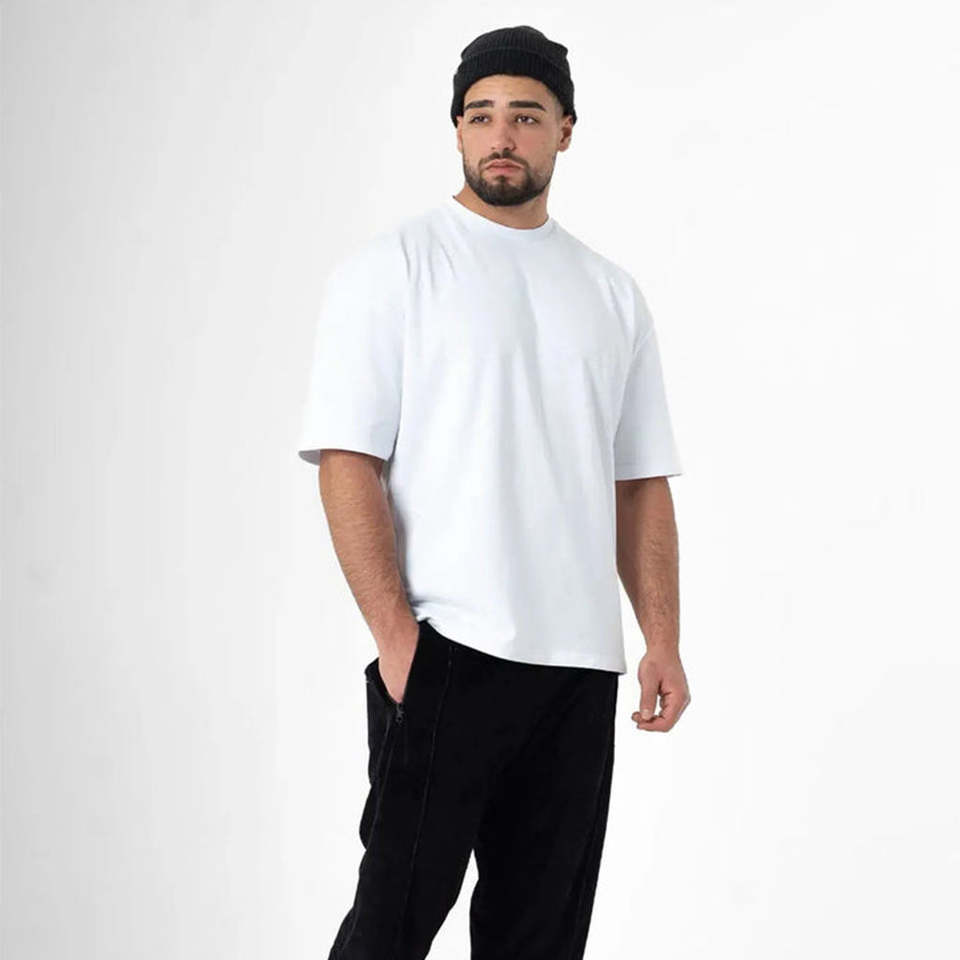 เสื้อยืดผ้าฝ้ายไซส์ใหญ่พิเศษสำหรับผู้ชายเสื้อยืดถักลายกราฟิกสีขาวพิมพ์ลายขนาดใหญ่พิเศษสำหรับ100%