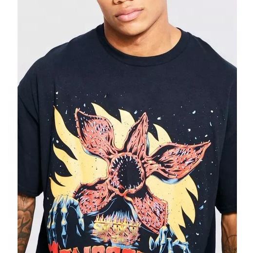 เสื้อยืดผู้ชายสะพายไหล่โอเวอร์ไซส์ผ้าคอตตอน100% พิมพ์ลายโลโก้กางเกงบ็อกซี่ฟิตสไตล์สตรีทแวร์
