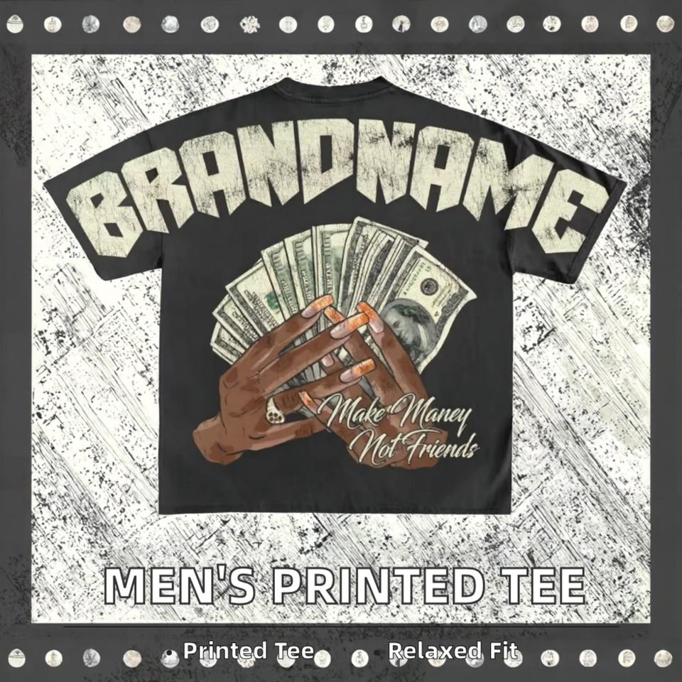 เสื้อยืดผู้ชายทรงโอเวอร์ไซส์ ผ้าฝ้ายเนื้อหนา พิมพ์ลายสกรีนแบบหนา สไตล์ทางการ ลายพื้นสีพื้น ด้วยเทคนิคการฟอกสีแบบ Acid Wash ไซส์พลัส
