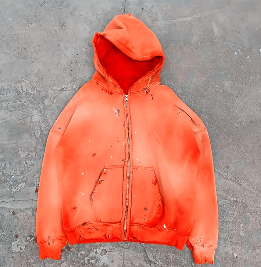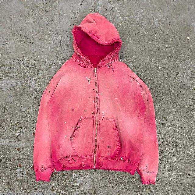 เสื้อฮู้ดผู้ชายโอเวอร์ไซส์ผ้า100% มีฮู้ดซักแบบวินเทจผ้าคอตตอนเทียมซิปเต็มตัวปรับแต่งลายนูนซีดจาง
