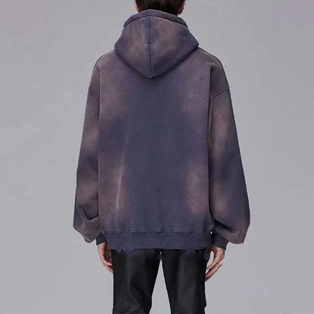 เสื้อสเวตเตอร์มีฮู้ดของผู้ชายโอเวอร์ไซส์วินเทจที่ซีดจางเสื้อฮู้ดถักกรดมีลายสำหรับฤดูหนาว