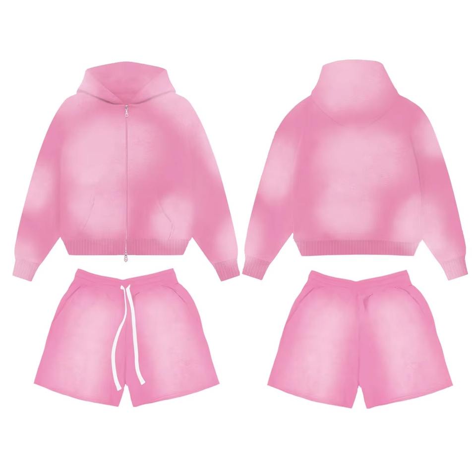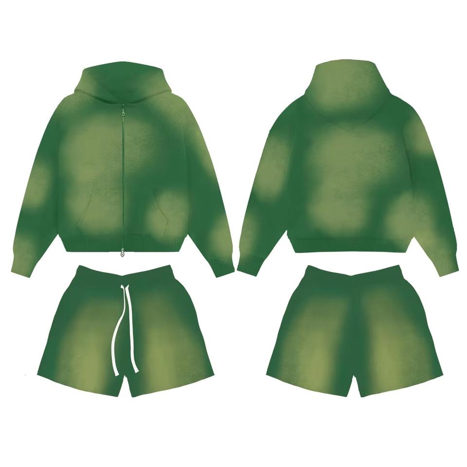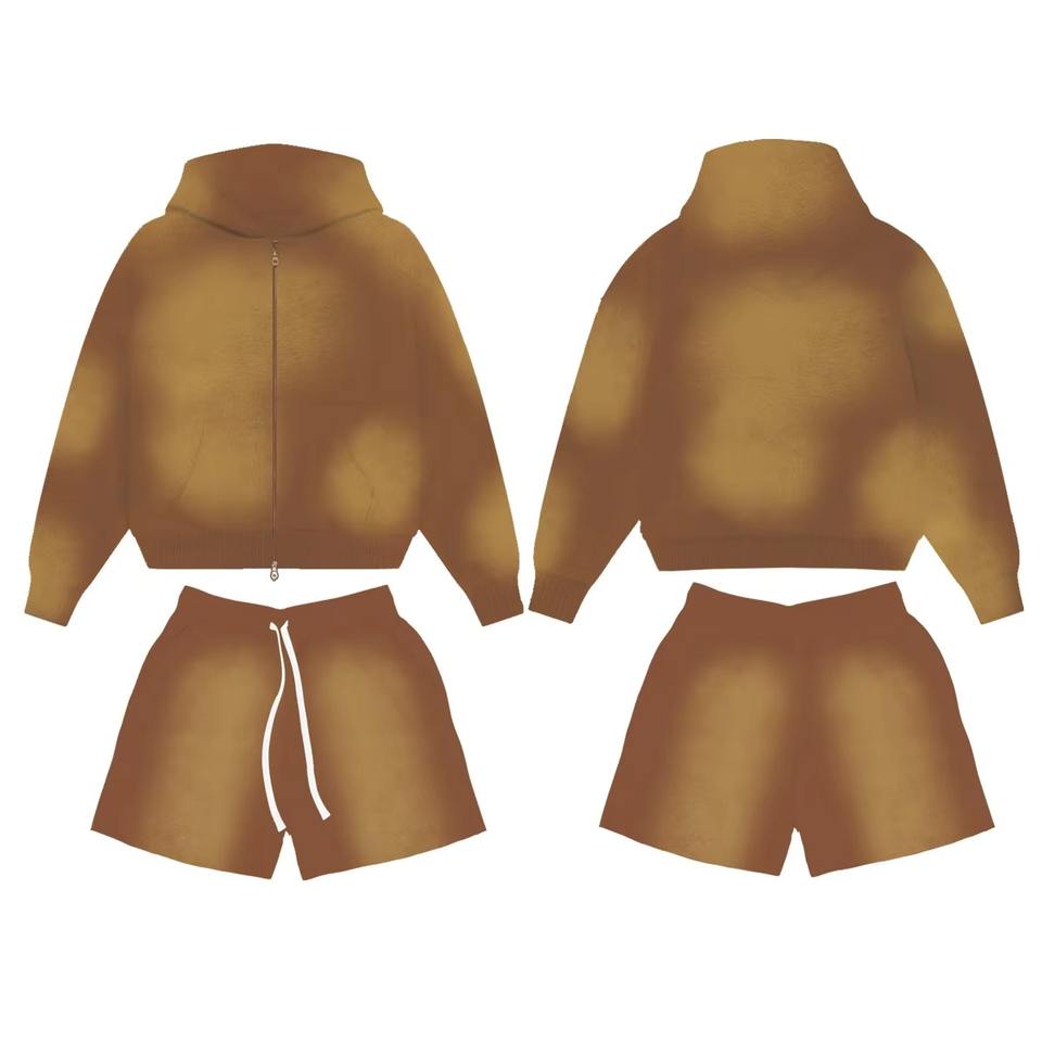 ชุดเซ็ตเสื้อฮู้ดซิปโอเวอร์ไซส์และกางเกงขาสั้นพิมพ์ลายลำลองสำหรับผู้ชาย สไตล์ฤดูใบไม้ร่วง