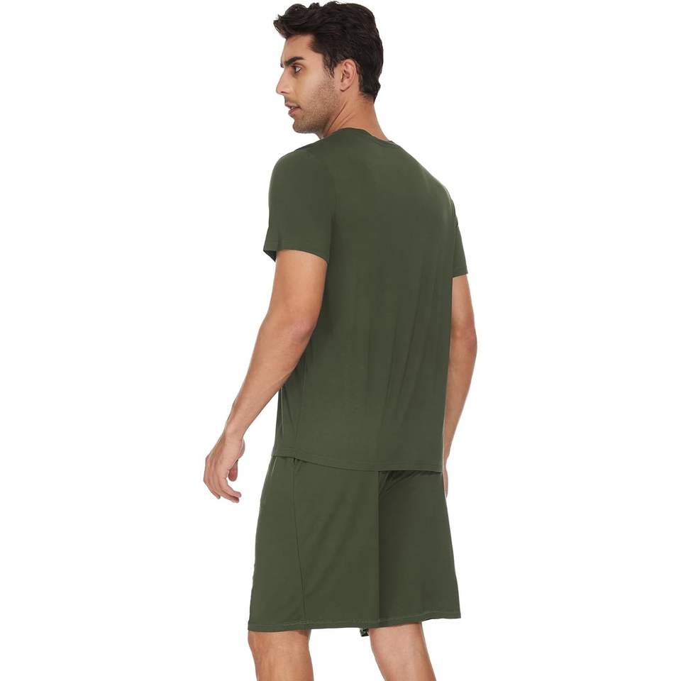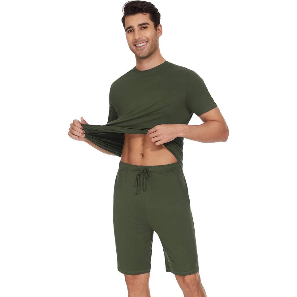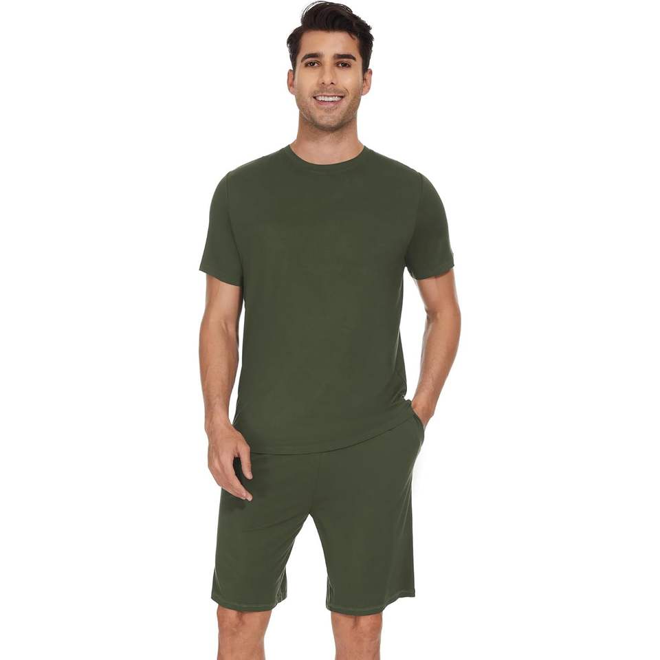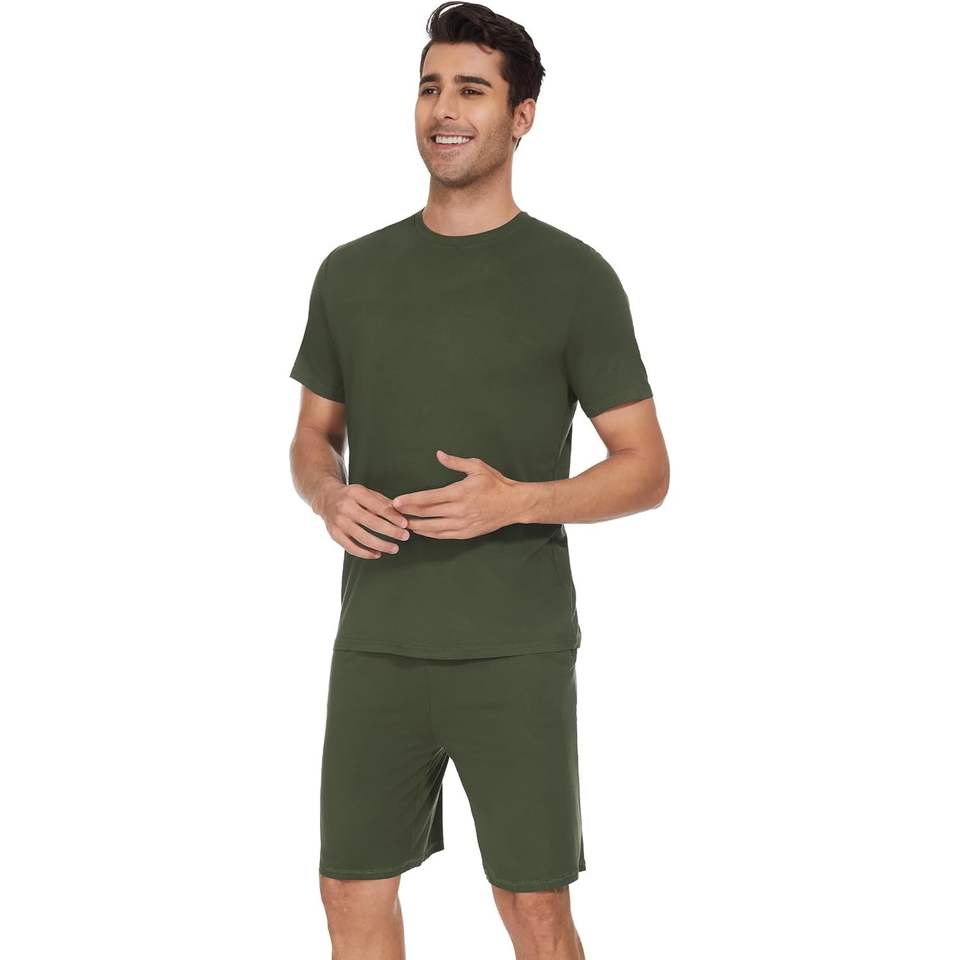 ชุดนอนผู้ชายแบบกำหนดเอง เสื้อแขนสั้นและกางเกงขาสั้น ผ้าใยไผ่เนื้อบางเบา ไซส์ S ถึง XXL