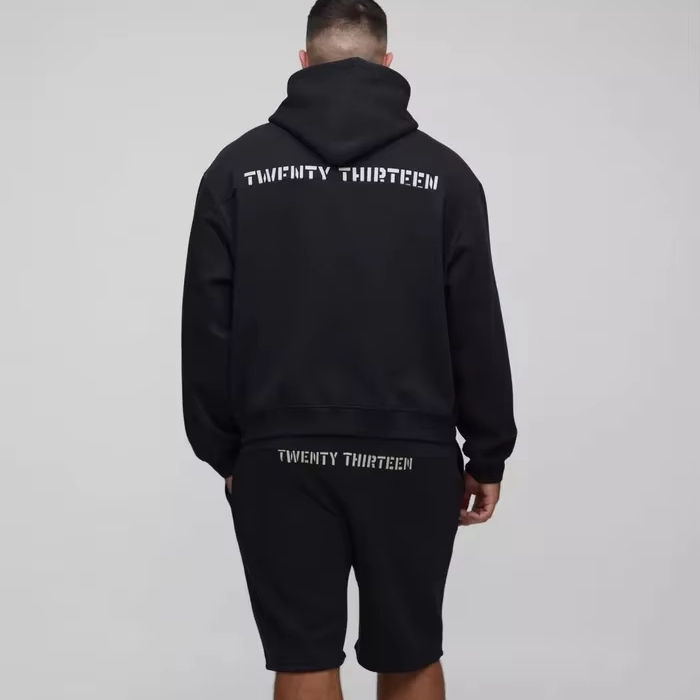 ชุดวอร์มสั้นสำหรับผู้ชายทรงบ็อกซี่มีฮู้ดพิมพ์ลาย13ไซส์พิเศษชุดวอร์มใส่สบายระบายอากาศได้ดี
