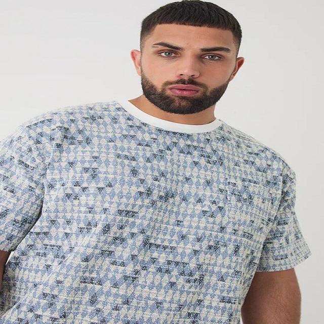 เสื้อยืดลายภูมิศาสตร์ผ้าแจ็คการ์ดขนาดใหญ่พิเศษสำหรับผู้ชายดีไซน์พิเศษเหมาะสำหรับทุกโอกาสผ้าถักพิมพ์ลาย