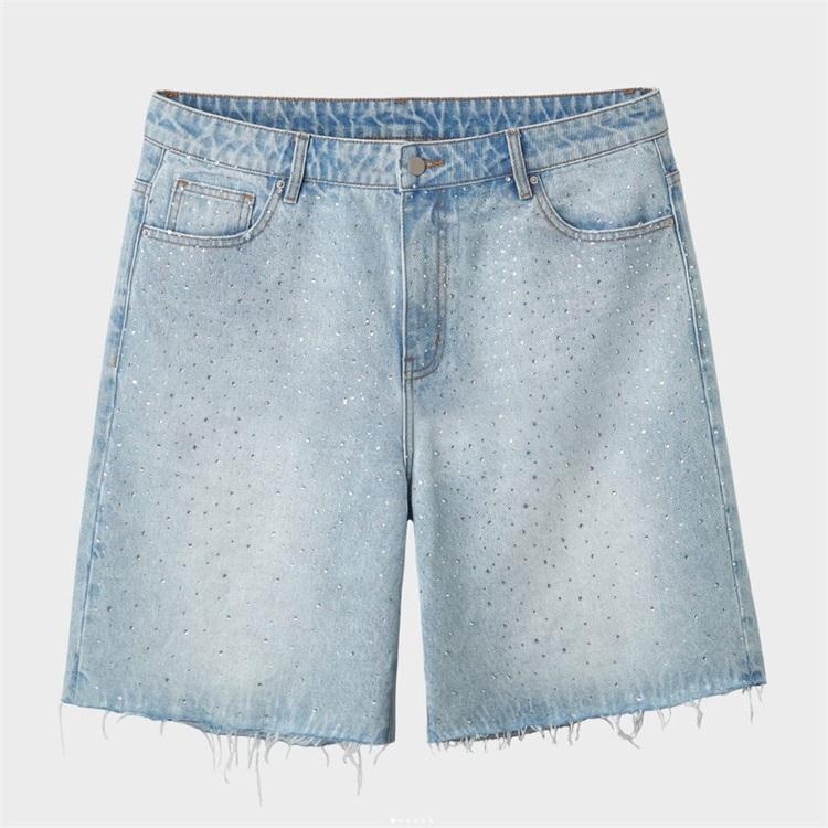 กางเกงยีนส์ขาสั้นทรงหลวมยาวครึ่งเข่าสำหรับผู้ชายกางเกงขาสั้นผ้ายีนส์ประดับพลอยเทียมแนววินเทจขนาดใหญ่พิเศษตามสั่ง