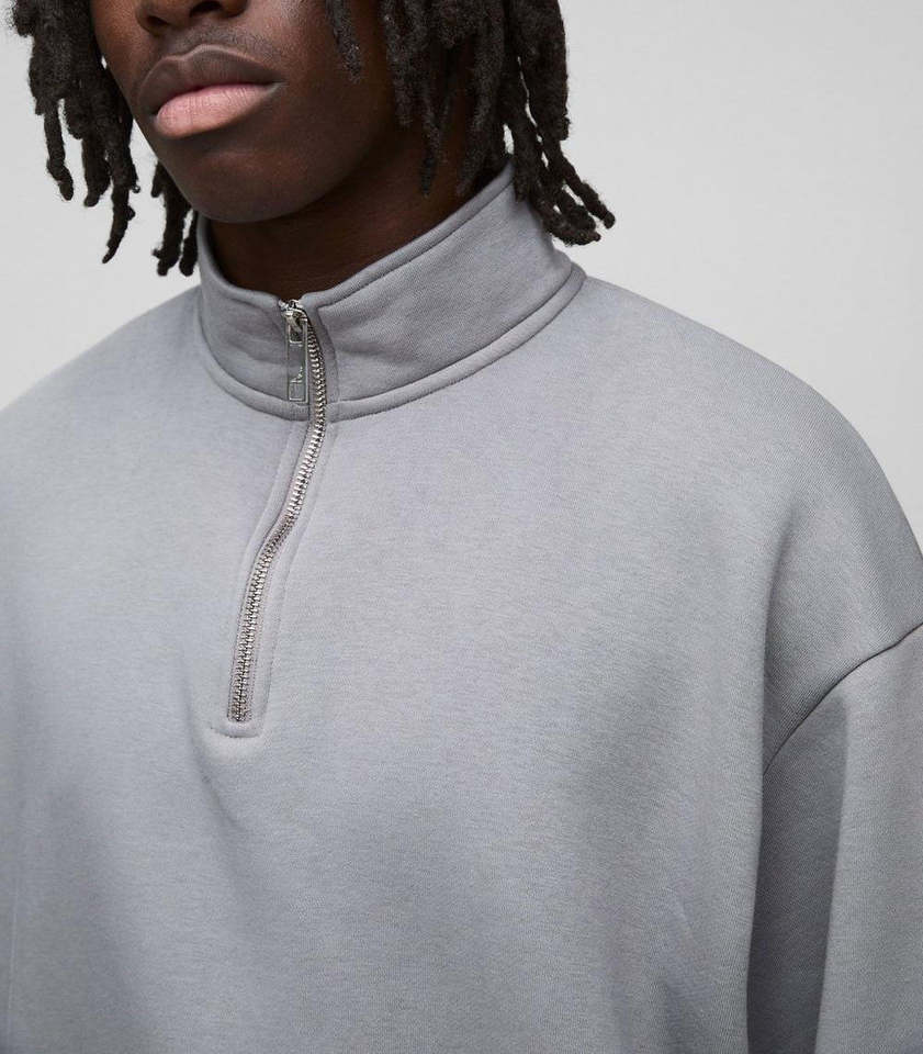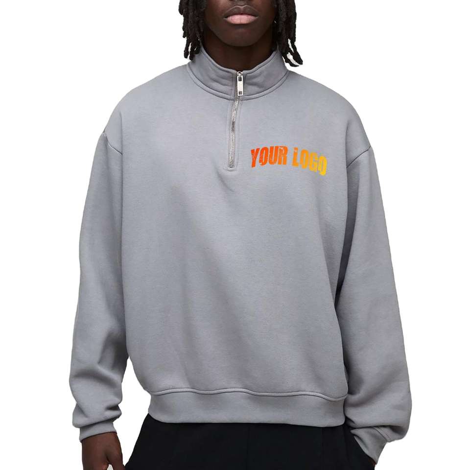เสื้อสเวตเชิ้ตผู้ชายไซส์ใหญ่พิเศษ แบบซิป 1/4 ทรงโอเวอร์ไซส์ กันลม ผ้าฝ้าย 100% พร้อมงานปักและดีไซน์ไหล่ตก สไตล์สตรีท
