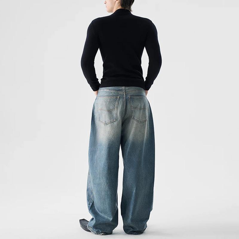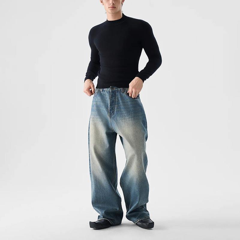 กางเกงยีนส์เดนิมทรงตรงขากว้างสไตล์วินเทจสีน้ำเงินคลาสสิกเอวสูงสไตล์ฮิปฮอปสตรีทแฟชั่นสำหรับผู้ชายไซส์ใหญ่