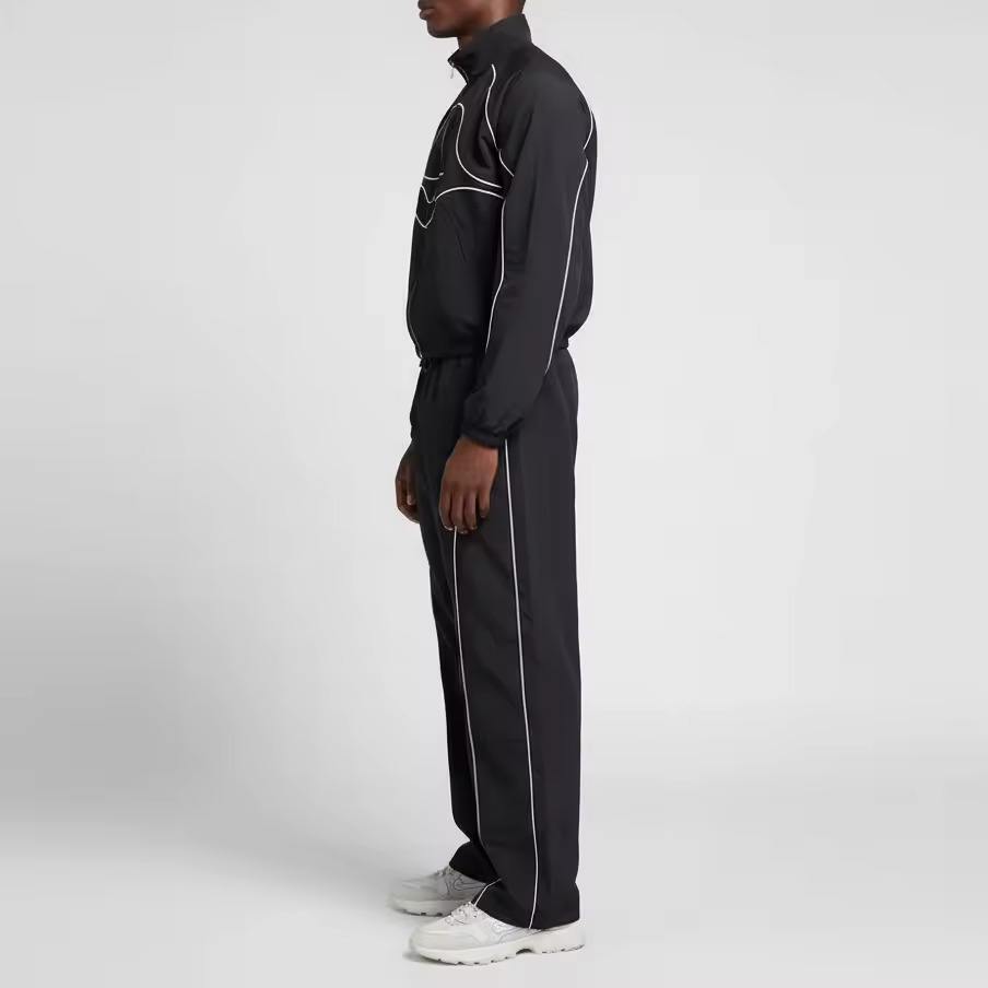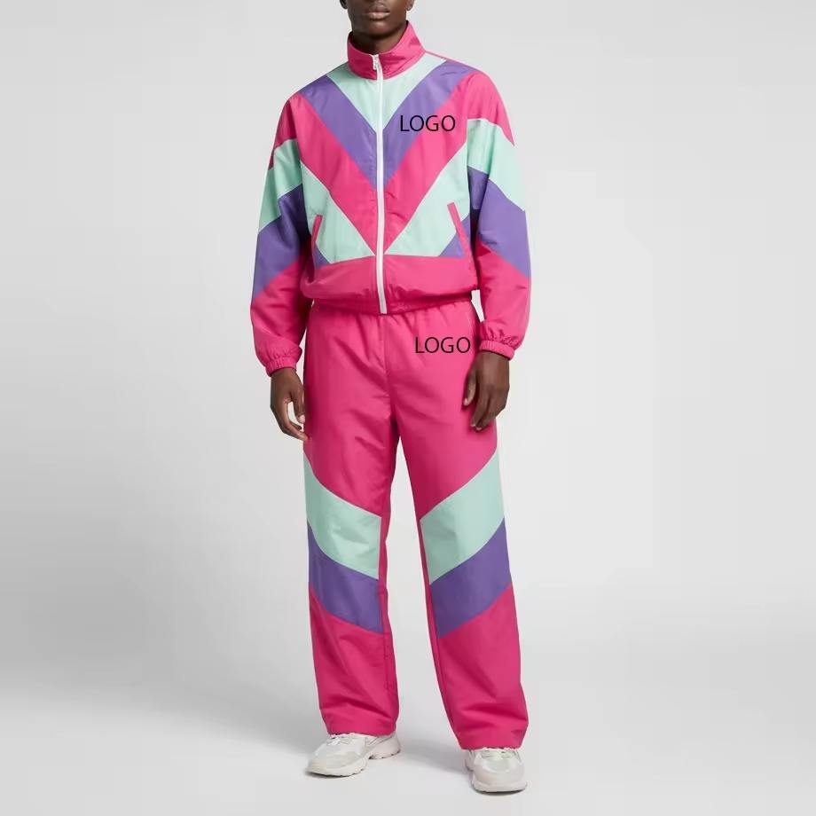 ชุดวอร์มกีฬาผู้ชายแบบมีซิปสะท้อนแสง ผลิตจากโพลีเอสเตอร์และไนลอน กันลม ชุดแจ็คเก็ตและกางเกงขาสั้น สำหรับวิ่งออกกำลังกายกลางแจ้ง สีพื้น