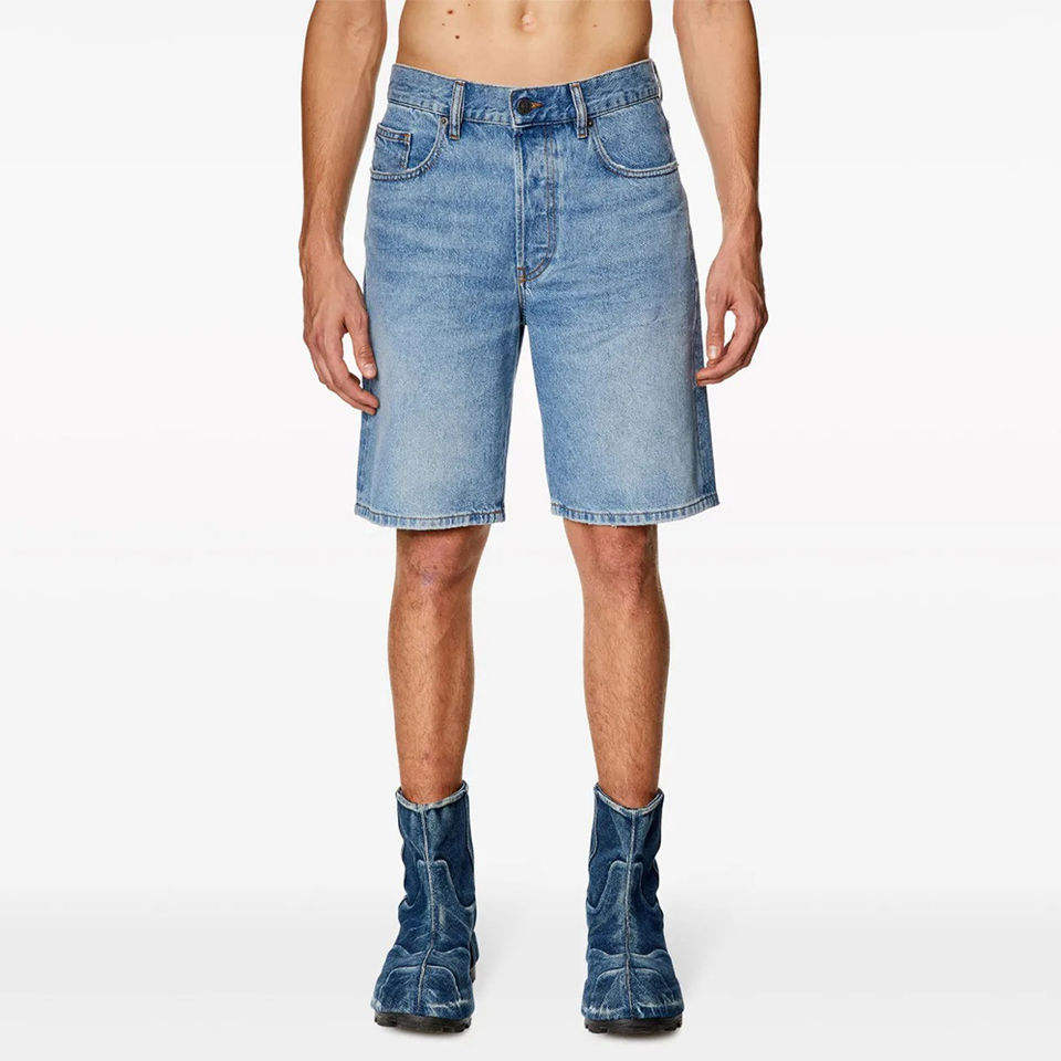 กางเกงยีนส์ขาสั้นทรงปกติสำหรับผู้ชายแบบสั่งทำพิเศษ | กางเกงยีนส์ขาสั้นสีน้ำเงินและสีดำสไตล์สตรีทแวร์สำหรับฤดูร้อน เนื้อผ้าระบายอากาศได้ดี สวมใส่สบาย ขายส่งแบบ OEM