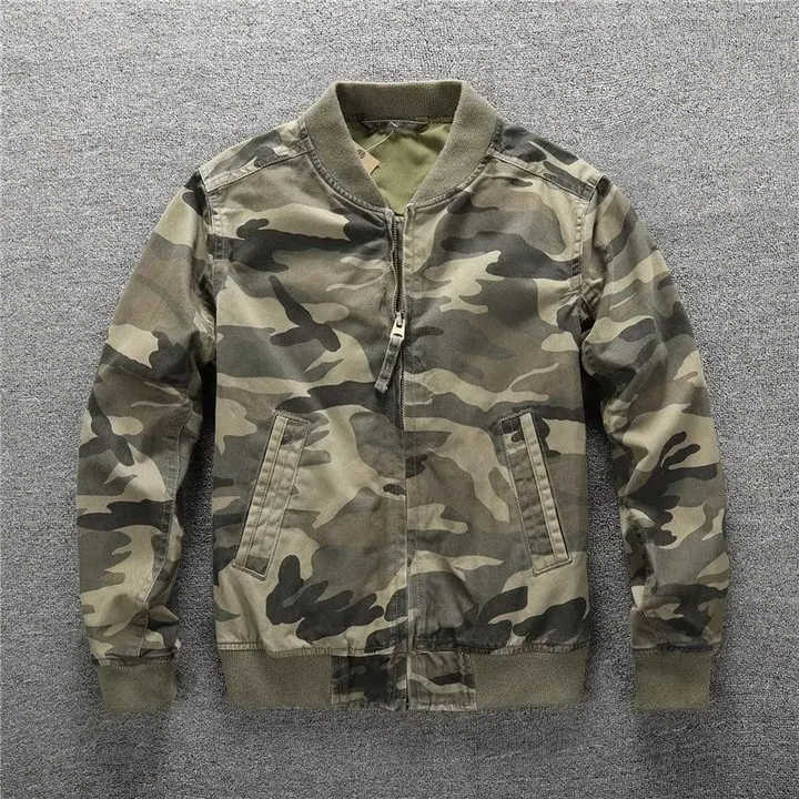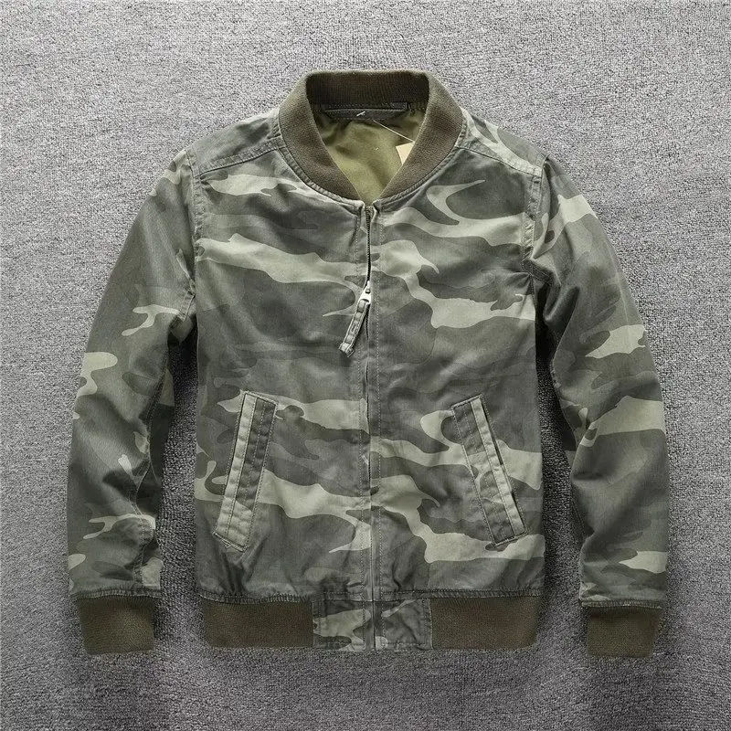 เสื้อแจ็คเก็ตบอมเบอร์สไตล์เรโทรสำหรับผู้ชาย ลายพราง แนวสตรีทแวร์ แจ็คเก็ตเบสบอล เสื้อโค้ทแฟชั่นลำลองสำหรับฤดูหนาว