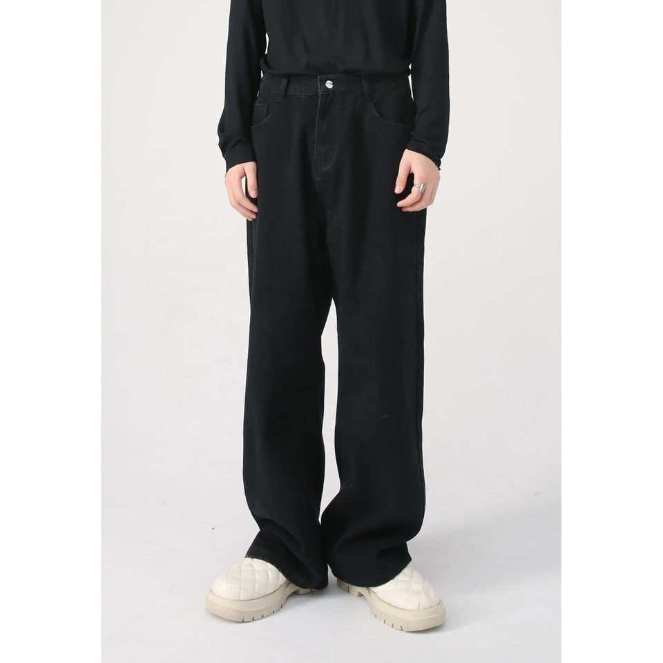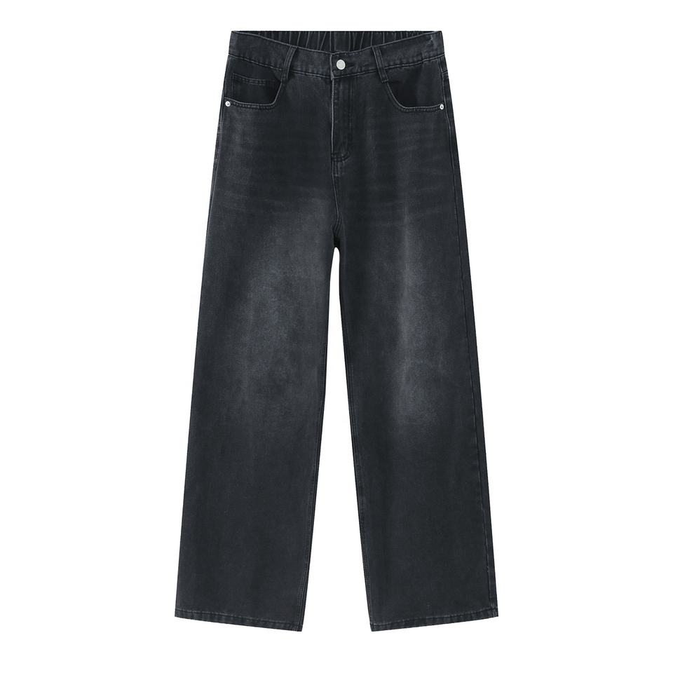 Custom Men's Retro Wash Jeans Frayed Distress Straight Leg Cylinder Blue Black Denim Mid Vintage for Summer Streetwear