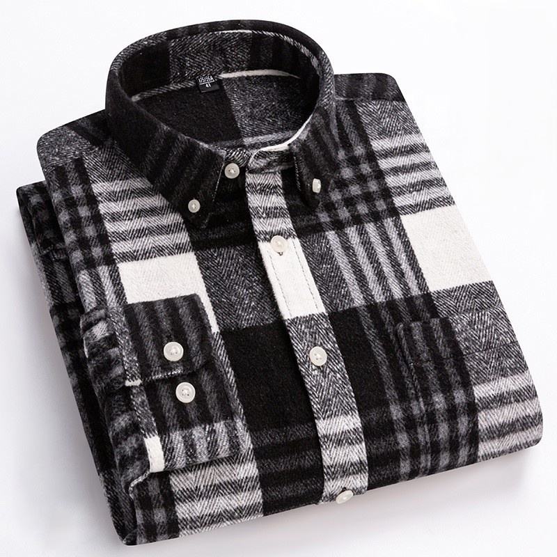 เสื้อเชิ้ตผู้ชายสั่งทำพิเศษ ผ้าฝ้ายโพลีเอสเตอร์ 100% หนา สีดำ สีแดง สำหรับฤดูใบไม้ร่วงและฤดูหนาว ติดกระดุม แขนยาว สไตล์วินเทจ เสื้อเชิ้ตผ้าสักหลาดลายสก็อต