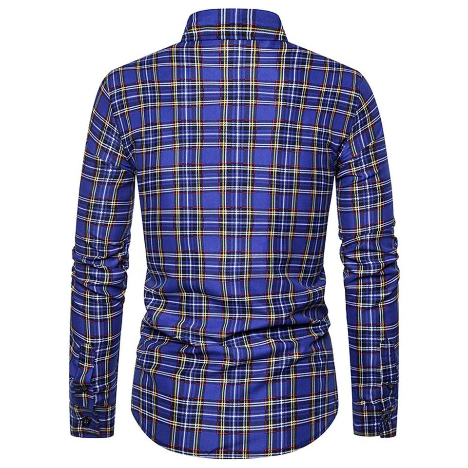 เสื้อเชิ้ตผู้ชายแบบสั่งตัด เสื้อเชิ้ตทำงานสำหรับผู้ชาย ผ้าฝ้ายลำลอง คอตั้ง แขนยาว