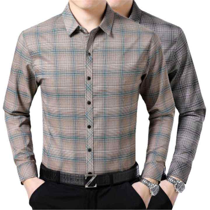 เสื้อเชิ้ตแขนยาวคอปกตั้งแบบลำลองสำหรับผู้ชายชุดทำงานแบบเป็นทางการทำจากผ้าฝ้าย