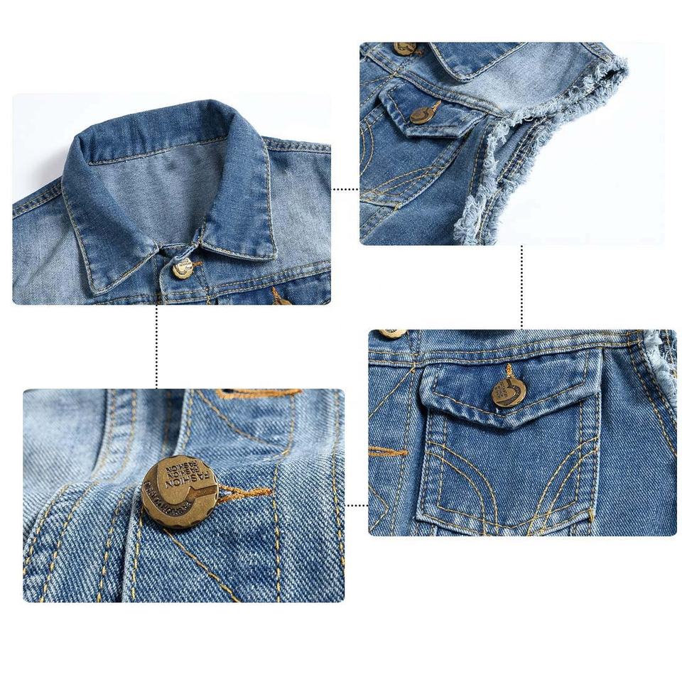 เสื้อกั๊กยีนส์ผ้าฝ้ายผู้ชายปรับแต่งได้