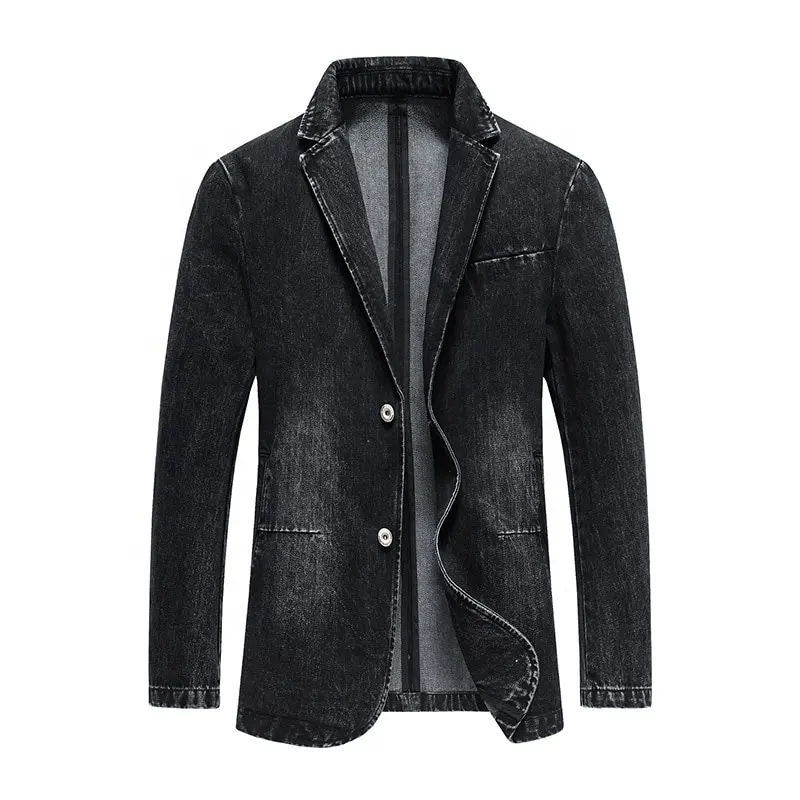 แจ็กเก็ตผ้าเดนิมเข้ารูปแบบวินเทจของผู้ชายเสื้อนอกแบบลำลอง