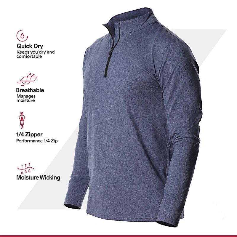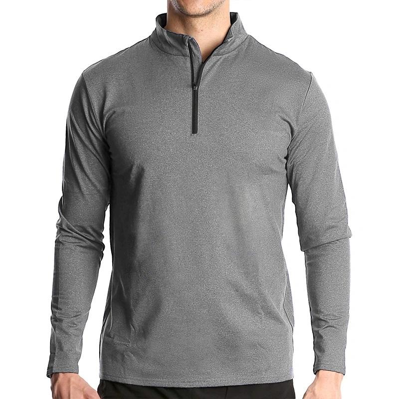 เสื้อยืดแขนยาวทรงสลิมฟิตสำหรับผู้ชาย แบบซิป ¼ ระบายอากาศได้ดี เหมาะสำหรับเล่นกีฬาและวิ่ง ผลิตจากโพลีเอสเตอร์/คอตตอน จัดส่งแบบ DDP
