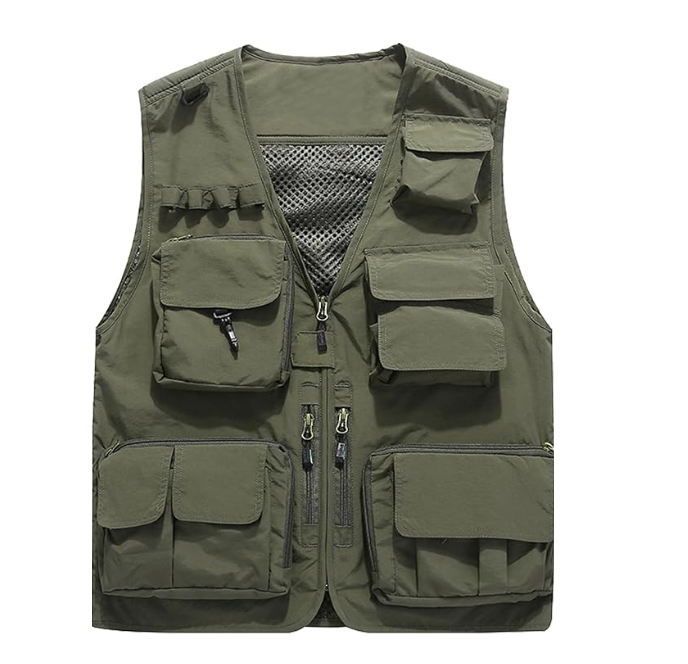 เสื้อแจ็กเก็ตการล่าสัตว์แขนกุดมีซิปสำหรับผู้ชายเสื้อแจ็กเก็ตกลางแจ้งดีไซน์ใหม่