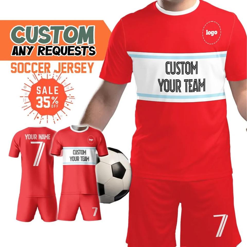 เสื้อฟุตบอลสำหรับเด็กวัยรุ่นสั่งทำได้มีโลโก้ชื่อทีมและหมายเลขตัดอัตโนมัติ