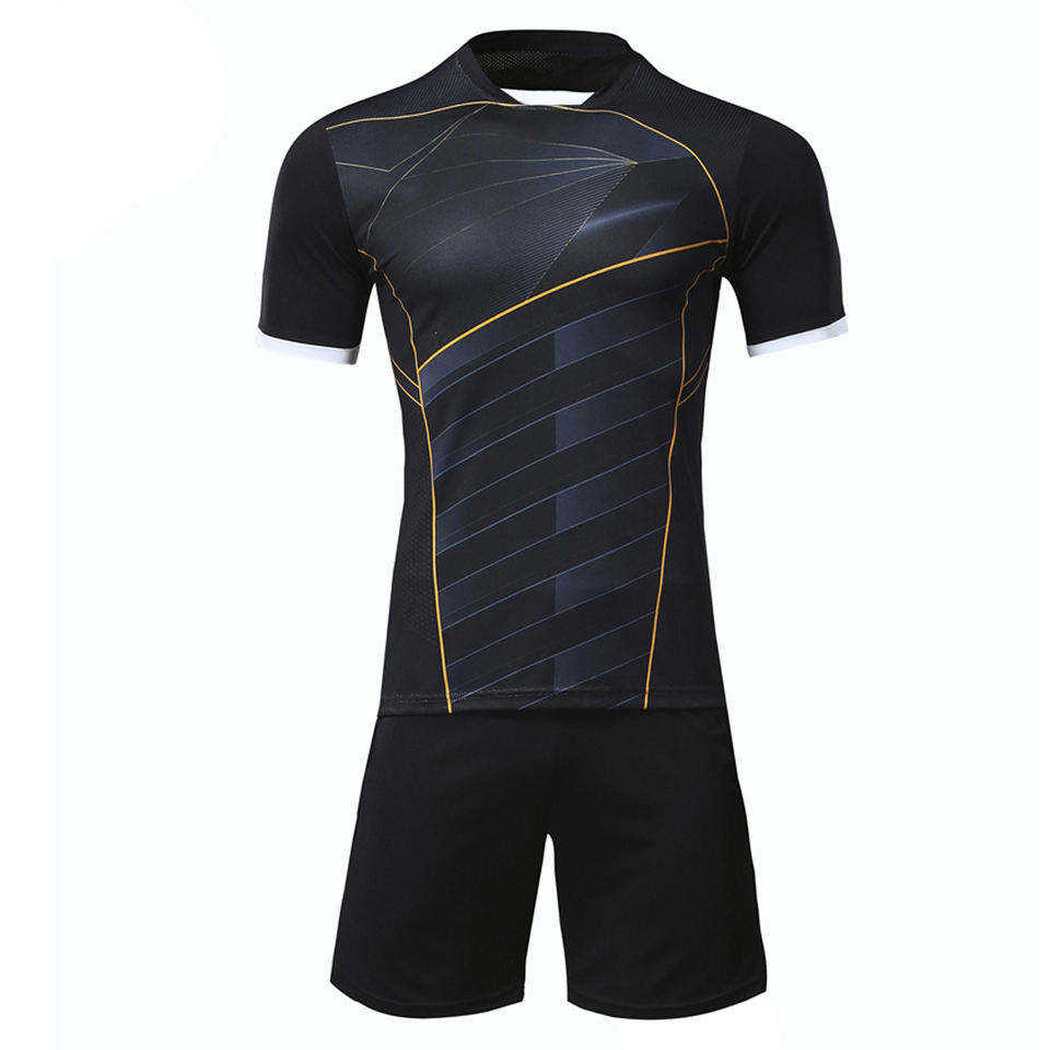 ชุดเสื้อและกางเกงฟุตบอลชายแบบกำหนดเอง สีและโลโก้ตามสั่ง ชุดกีฬาโพลีเอสเตอร์ 100%