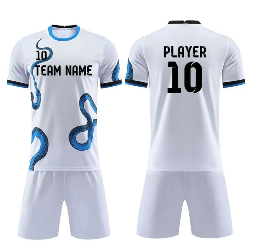 ชุดเครื่องแบบนักฟุตบอลของผู้ชายชุดเสื้อ100% เล่นโลโก้ด้านหน้าทำจากโพลีเอสเตอร์สร้างตำแหน่งเสื้อและกางเกงขาสั้นในแบบของคุณเอง