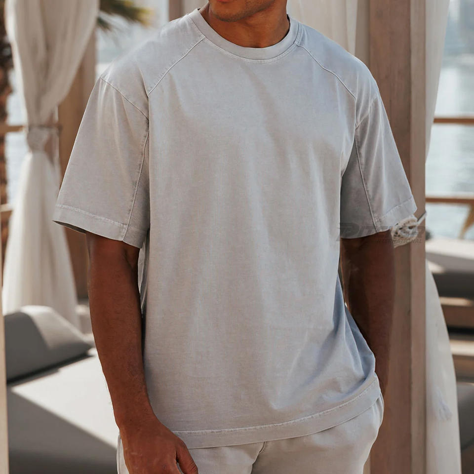 เสื้อยืดออกกำลังกายผู้ชายผ้าคอตตอนถัก 100% พิมพ์โลโก้ตามสั่ง แห้งเร็ว ระบายอากาศ ป้องกันรังสียูวี