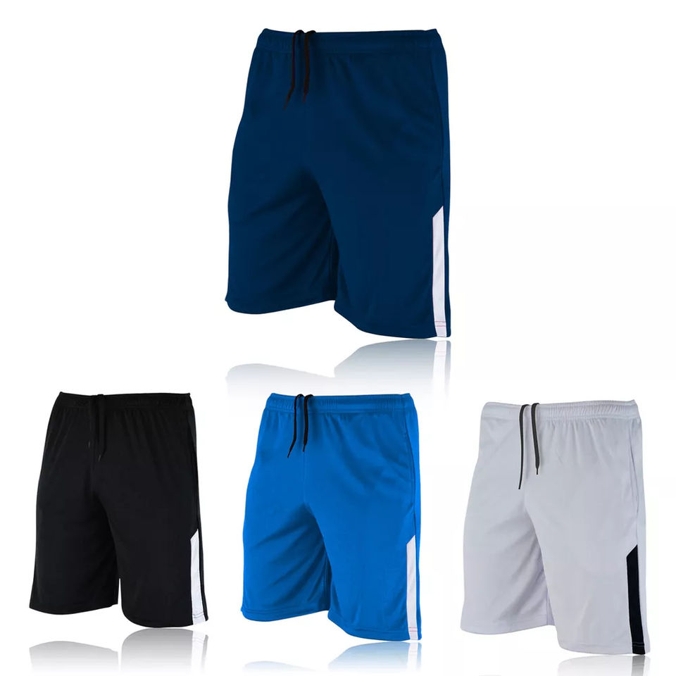 กางเกงฟุตบอลผ้าโพลีเอสเตอร์ตาข่ายสำหรับผู้ชายแบบสปอร์ต ระบายอากาศได้ดี แห้งเร็ว พร้อมถุงเท้า