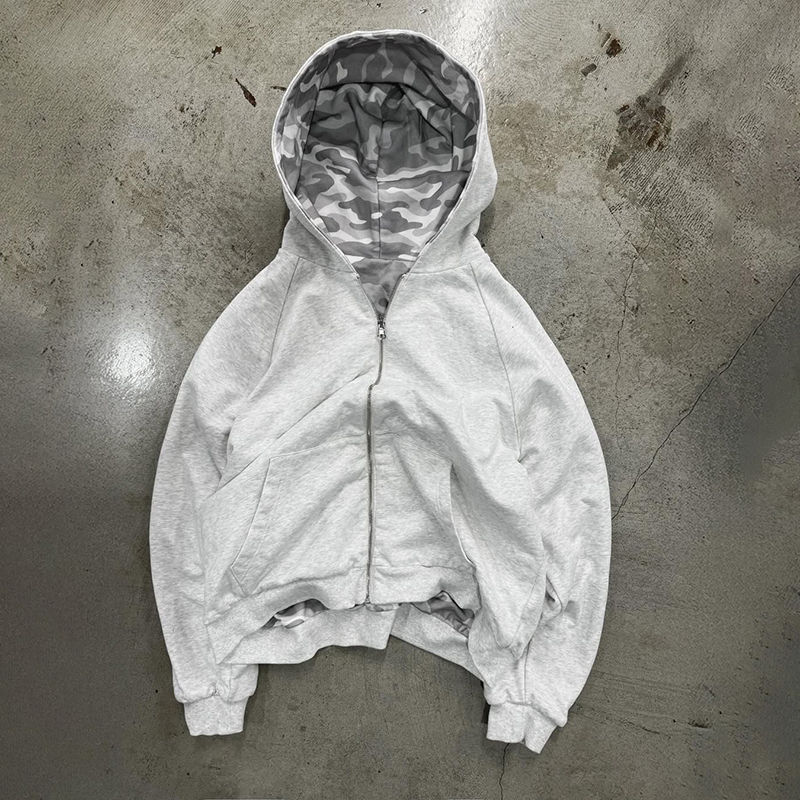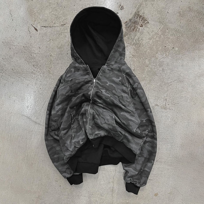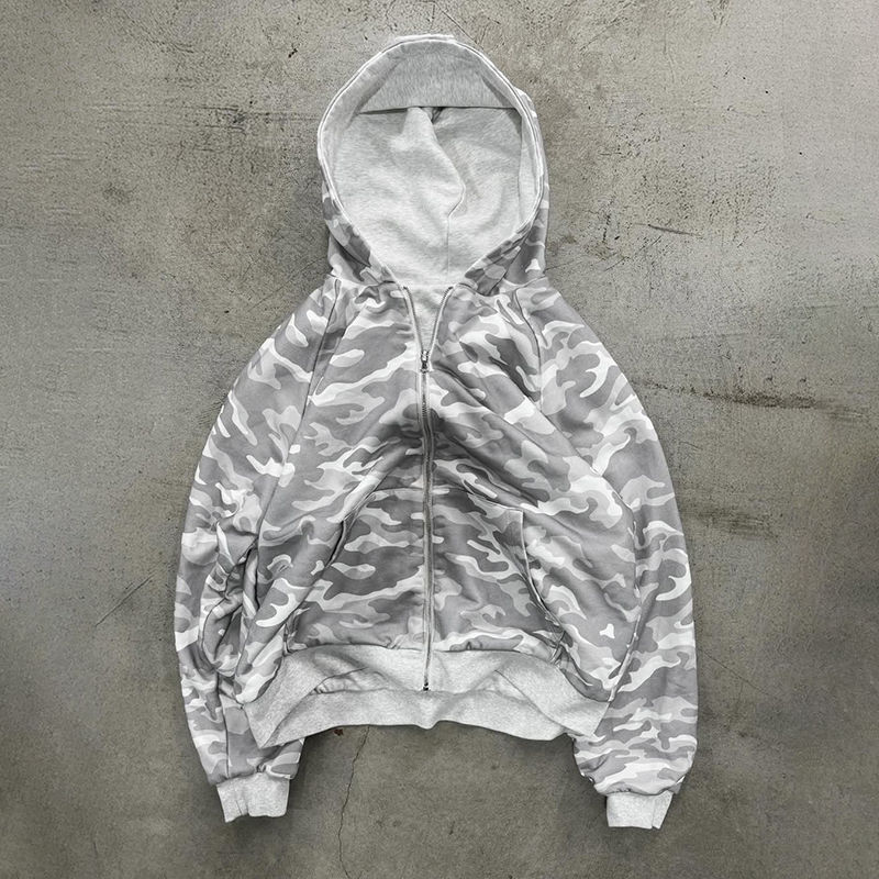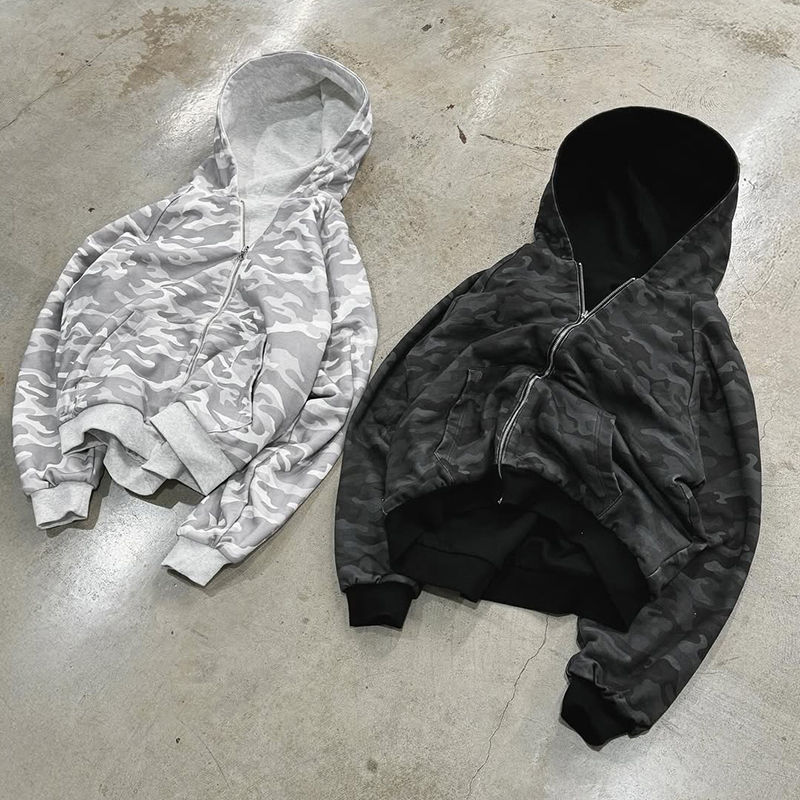 เสื้อมีฮู้ดสำหรับผู้ชายผ้าคอตตอนพิมพ์ลายพรางผ้าเกล็ดปลาแบบรูดซิปรูดรูดได้สำหรับ100%