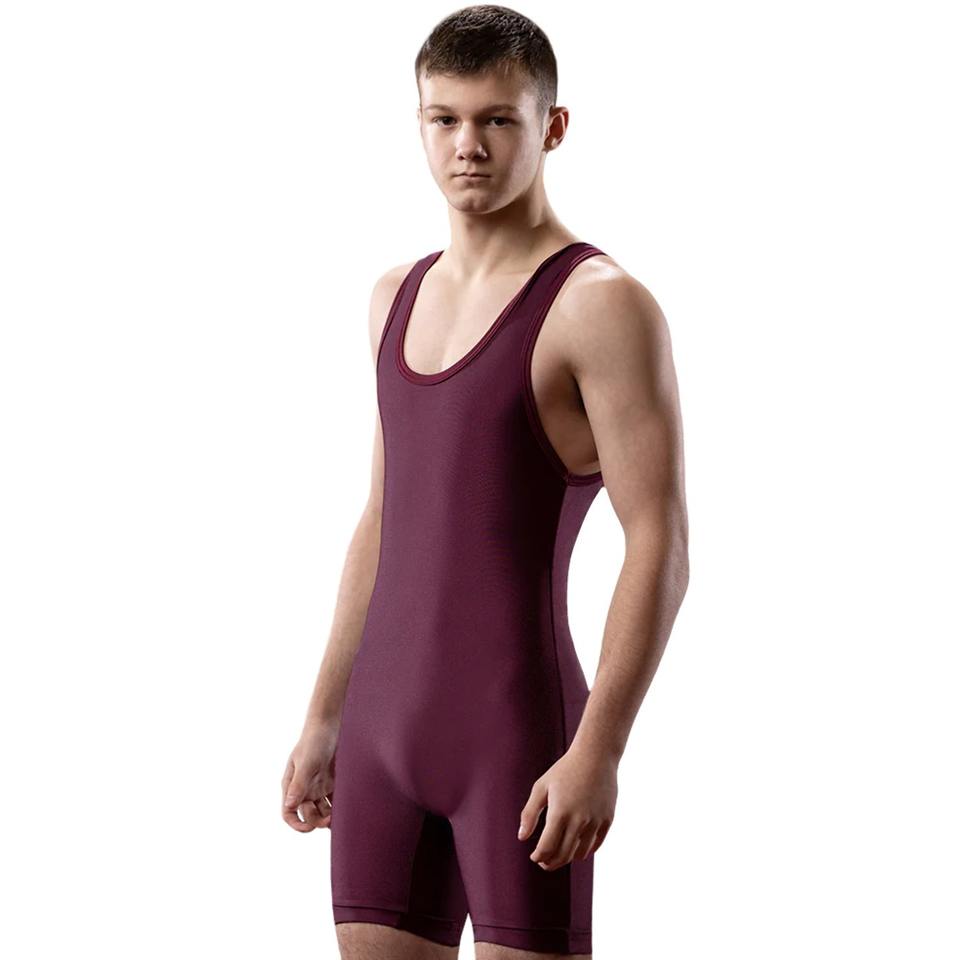Custom Men's Sublimated Strapless Snap Closure Spandex/Polyester Wrestling Singlet Color 1 Pakistan Model SJF-011201