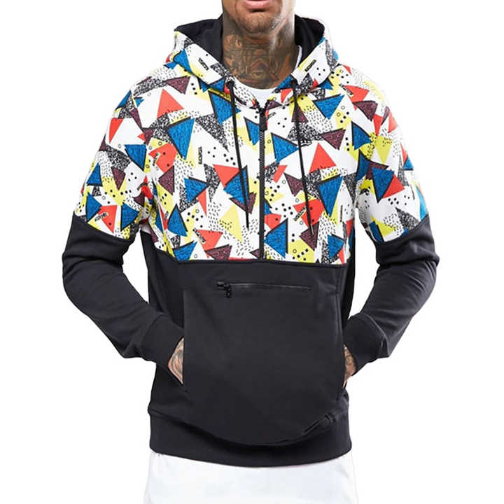 เสื้อฮู้ดดี้ผู้ชายแบบสั่งทำพิเศษ พิมพ์ลาย ซับลิเมชั่น ผ้าฝ้ายรักษ์โลก สำหรับฤดูใบไม้ร่วง เปิดซิปครึ่งตัว