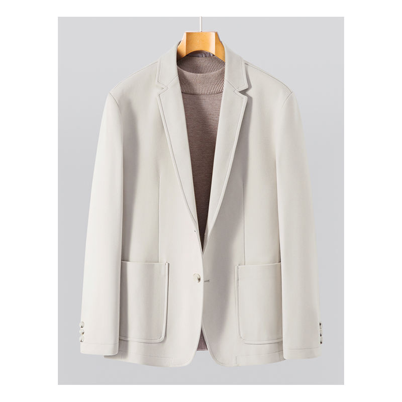 ชุดสูทผ้าถักสำหรับผู้ชายกระดุมแถวเดียวสำหรับนักธุรกิจลำลองขนาดพิเศษหัวเข็มขัดคู่สำหรับฤดูใบไม้ร่วง