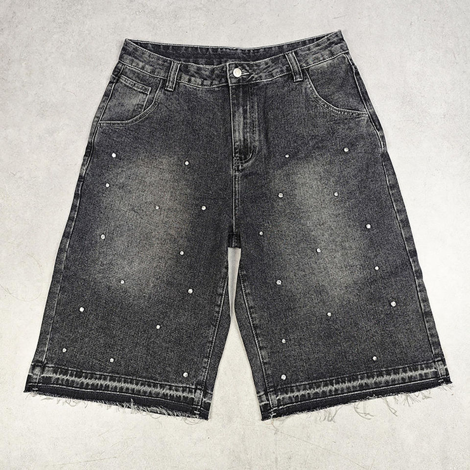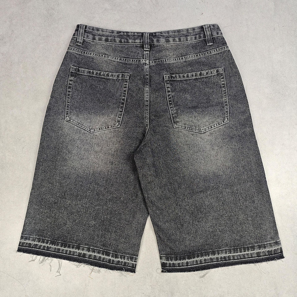 กางเกงยีนส์ขาสั้นผ้าเดนิมแบบถักสำหรับผู้ชายกางเกงขาสั้นผ้าคอตตอนทรงหลวมซักด้วยผ้า100% ไซส์พิเศษออกแบบได้ตามต้องการสำหรับฤดูร้อน