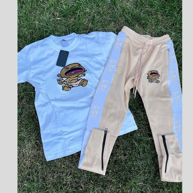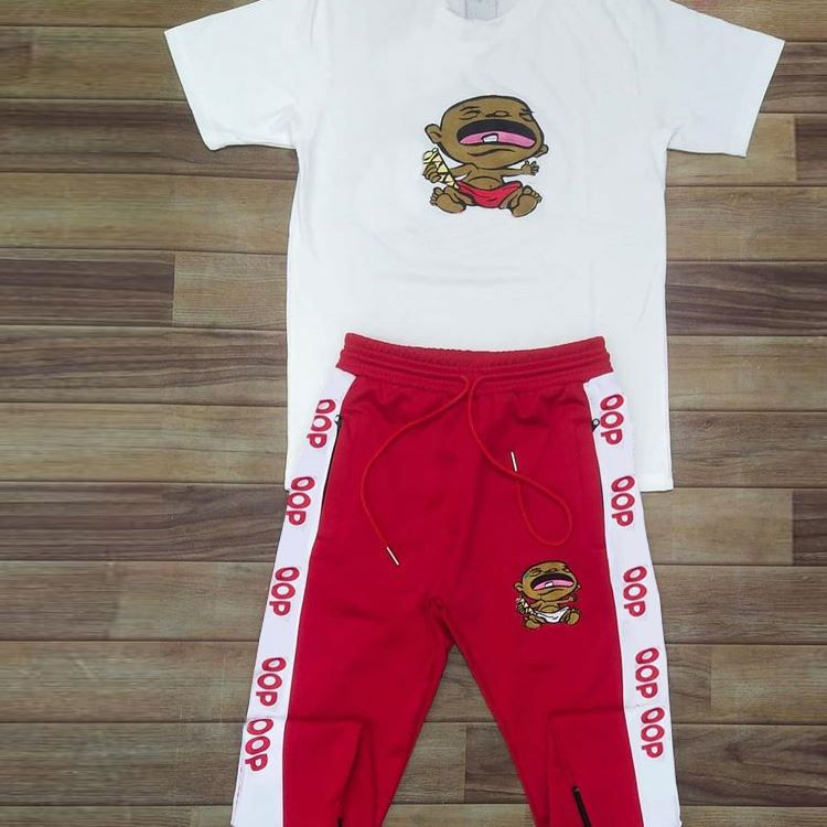 ชุดเซ็ตเสื้อยืดแขนสั้นและกางเกงขายาวสไตล์ฮิปฮอปสตรีทแวร์สำหรับผู้ชายช่วงฤดูร้อน ชุดลำลองสำหรับออกกำลังกาย