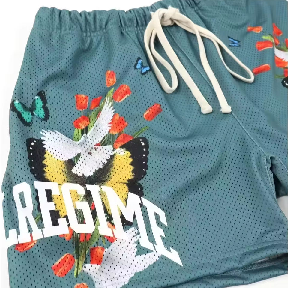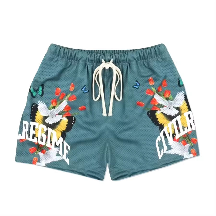 กางเกงขาสั้นผู้ชายแบบกำหนดเองสำหรับฤดูร้อน ความยาวระดับเข่า ผลิตจากโพลีเอสเตอร์ 100% เป็นมิตรกับสิ่งแวดล้อม ลายเรียบ ผ้าตาข่าย มีบริการ OEM