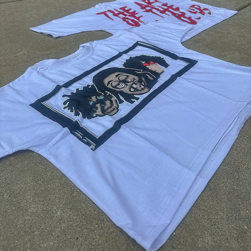 ชุดกีฬาสำหรับผู้ชายชุดกางเกงขาสั้นผ้ายีนส์ระบายอากาศได้ดีซักด้วยกรดเสื้อยืดสไตล์บ็อกซี่แบบถักขนาดพิเศษ