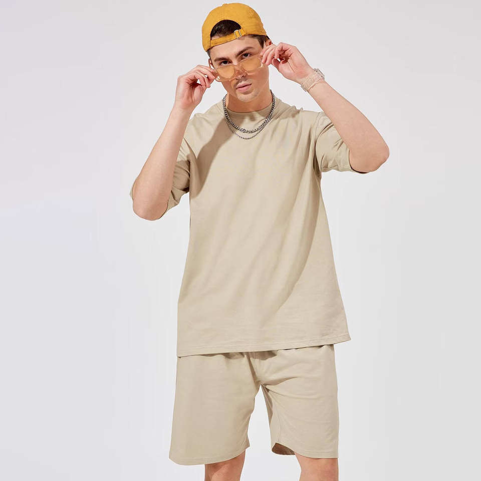 ชุดสตรีทแวร์สำหรับผู้ชายชุดสั้นแบบกำหนดเองสำหรับฤดูร้อนชุดถักนิตติ้งผ้าฝ้าย100% วินเทจชุดวิ่งโลโก้สำหรับผู้ชาย