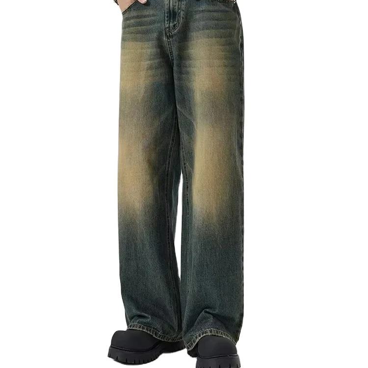 กางเกงยีนส์ทรงตรงผ้าเดนิมดิบ 100% คอตตอน ตกแต่งกระดุม สำหรับผู้ชาย ใส่ได้ทั้งฤดูร้อนและฤดูหนาว น้ำหนักเบา ทรงหลวม