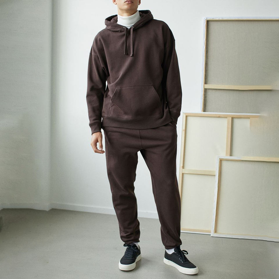 ชุดเซ็ตเสื้อฮู้ดดี้และกางเกงวอร์มผู้ชายสั่งทำพิเศษ เอวกลาง ผ้าคอร์ดูรอยหนานุ่ม สไตล์ไฮสตรีท