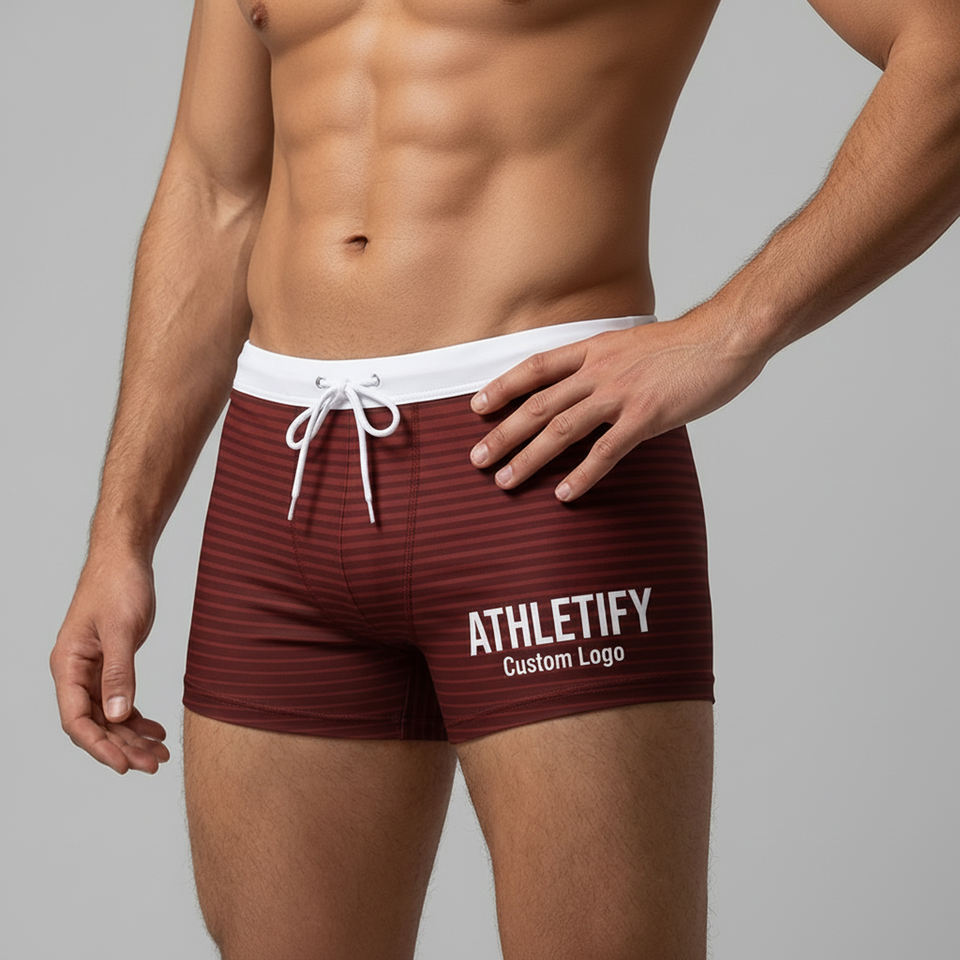 กางเกงว่ายน้ำชายแบบสั่งทำพิเศษ กางเกงชายหาดพิมพ์ลายโลโก้ตามต้องการ แห้งเร็ว UPF50+ ชุดว่ายน้ำกีฬาฤดูร้อนใส่สบาย