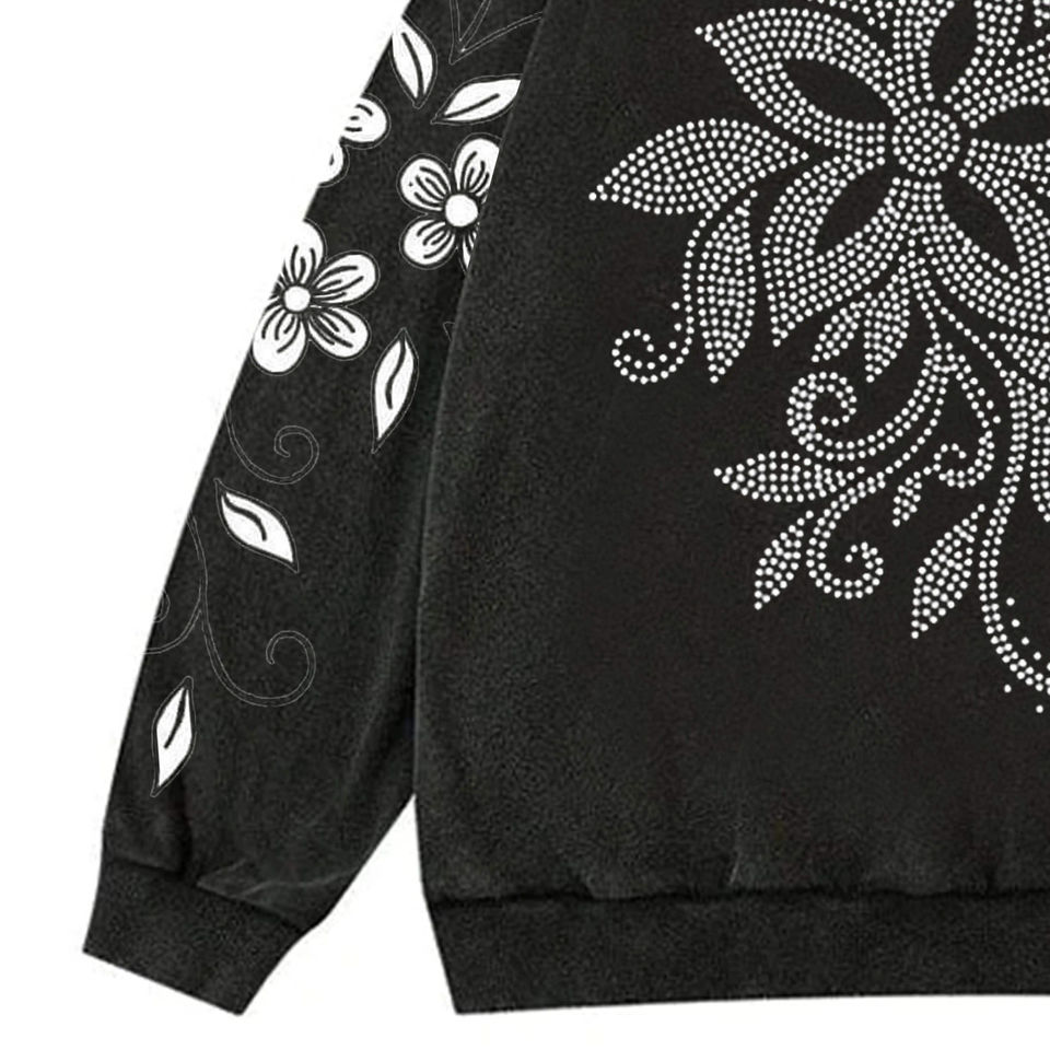เสื้อฮู้ดหนาผ้าเทอร์รี่สำหรับผู้ชายโอเวอร์ไซส์ผ้าฟลีซผสมผ้าฝ้ายพิมพ์ลายพลอยเทียมแบบกำหนดเอง