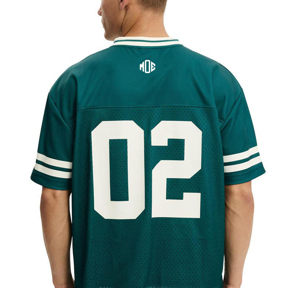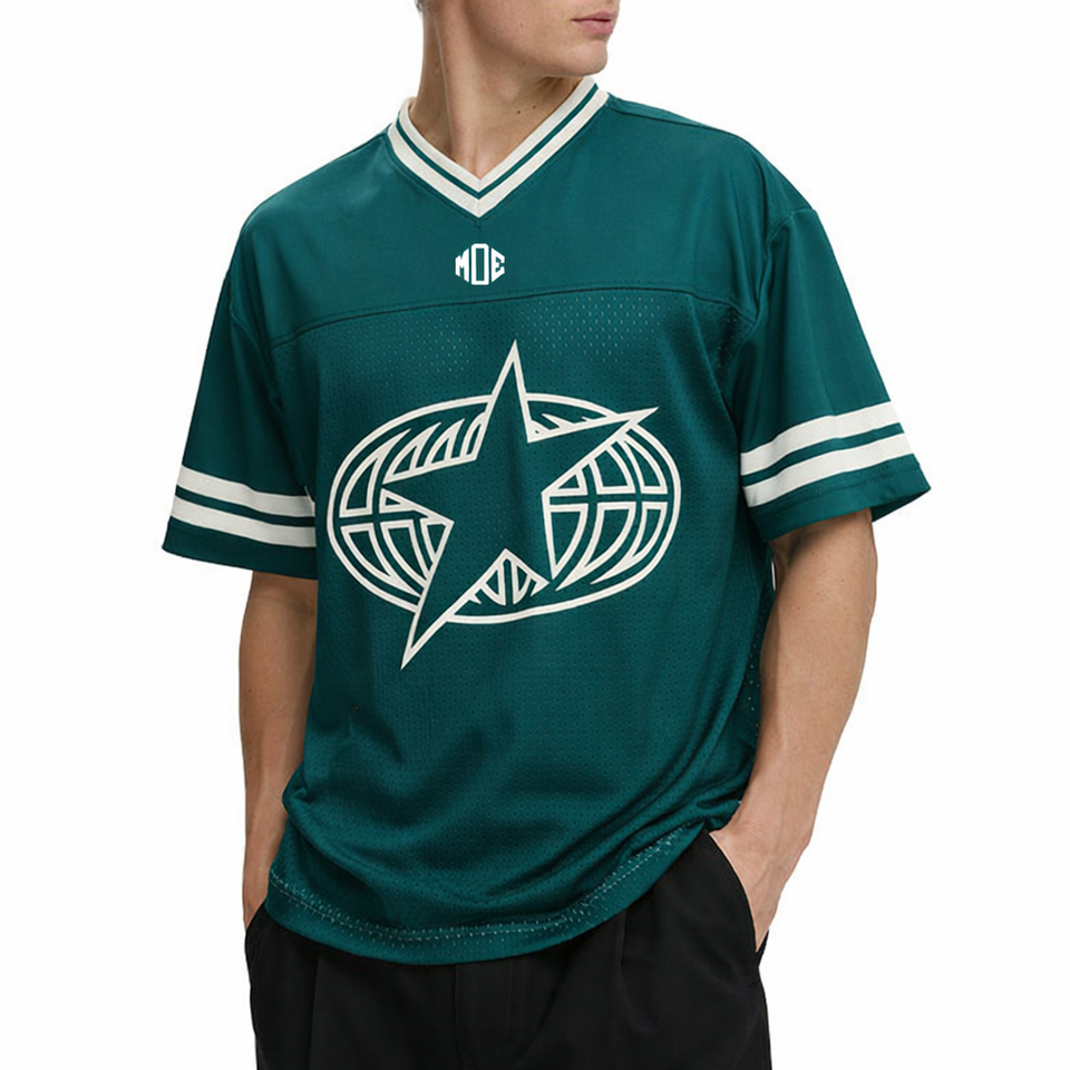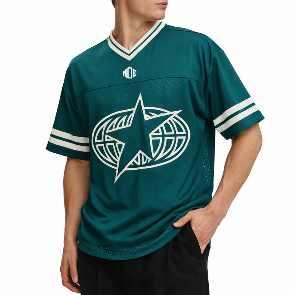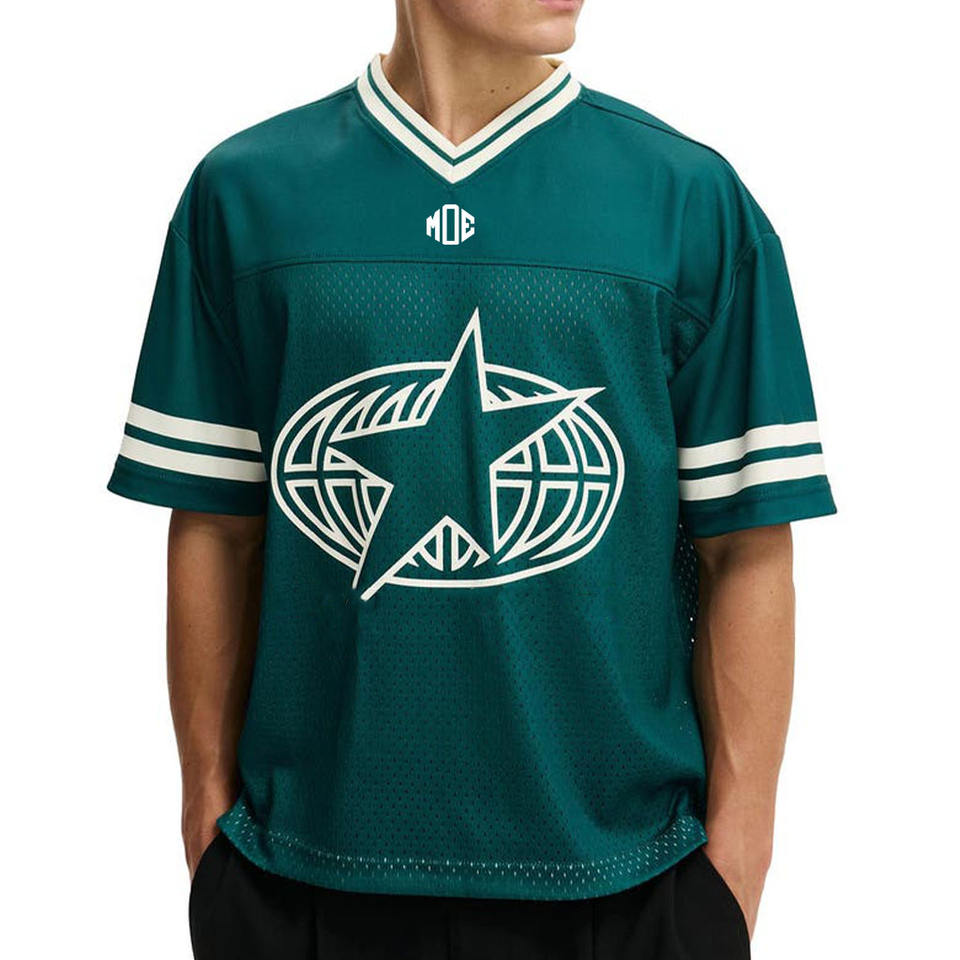 เสื้อเจอร์ซีย์อเมริกันฟุตบอลแขนสั้นผู้ชายแบบสั่งทำพิเศษ ผ้าตาข่าย คอวีคลาสสิก ขายส่ง เสื้อยืด OEM แบรนด์ส่วนตัว สั่งซื้อจำนวนมาก สหรัฐอเมริกา