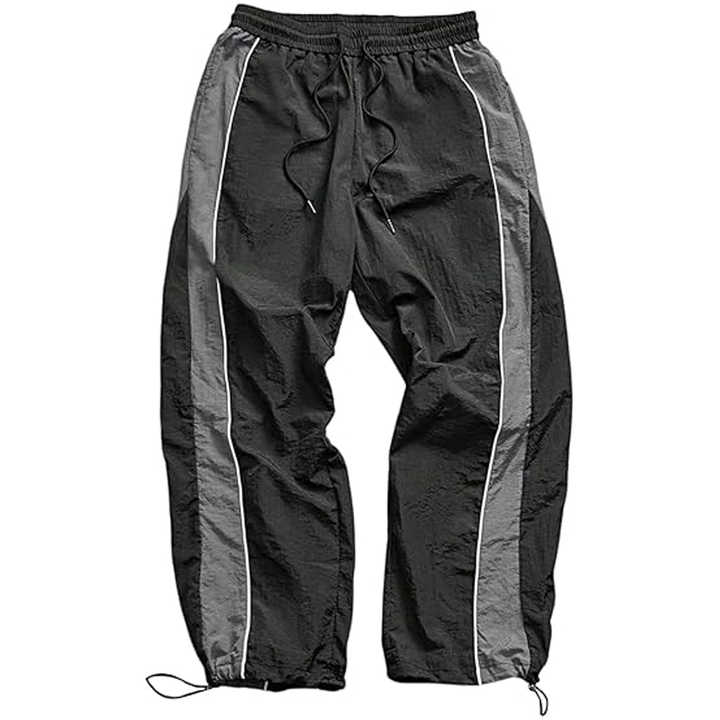 กางเกงวอร์มผู้ชายแบบสั่งทำพิเศษ ผ้าไนลอนน้ำหนักเบา ดีไซน์แต่งขอบแบบกำหนดเอง สีพื้น สไตล์ฮิปฮอป กางเกงกีฬาแนวสตรีทแฟชั่น