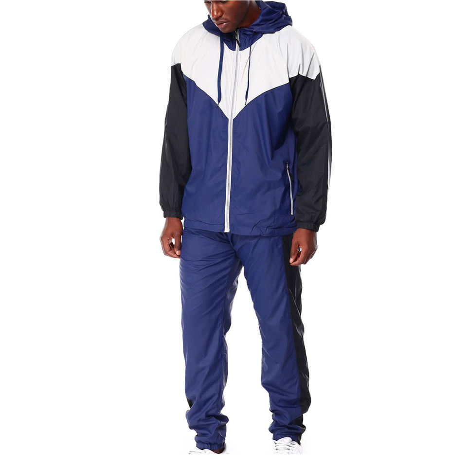 ชุดวอร์มผู้ชายแบบมีซิปครึ่งตัว ชุดออกกำลังกาย เสื้อแจ็คเก็ตผ้าไนลอน กางเกงวอร์มสำหรับวิ่งจ๊อกกิ้ง