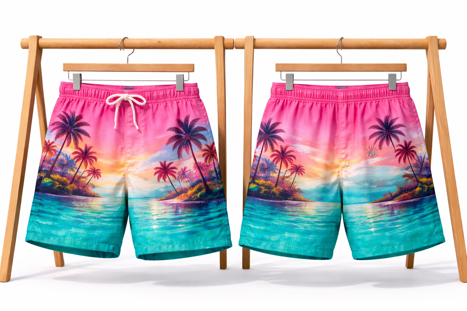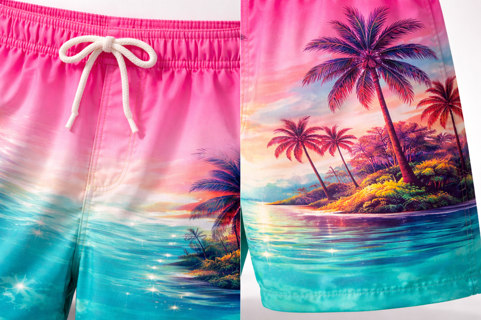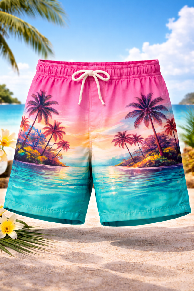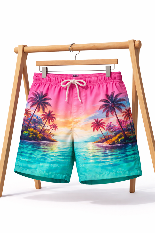 กางเกงชายหาดชายแบบแห้งเร็วสำหรับผู้ชาย – กางเกงบอร์ดสีชมพูไล่เฉดสำหรับฤดูร้อน รับผลิตแบบ OEM แบรนด์ส่วนตัว ขายส่ง