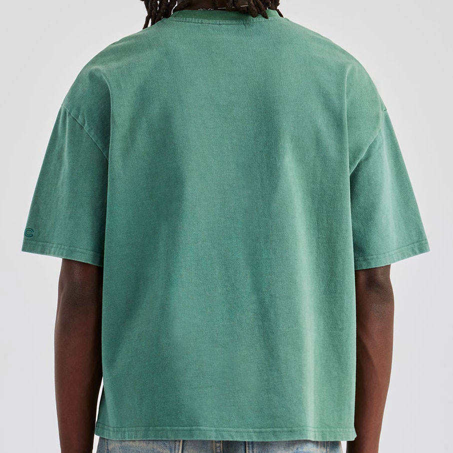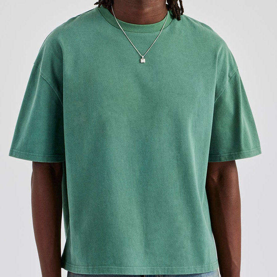 เสื้อยืดโอเวอร์ไซส์ผ้าคอตตอนถักน้ำหนัก 220 กรัม ซักย้อมสีแบบแอซิดวอช สำหรับผู้ชาย พร้อมโลโก้แบบกำหนดเอง