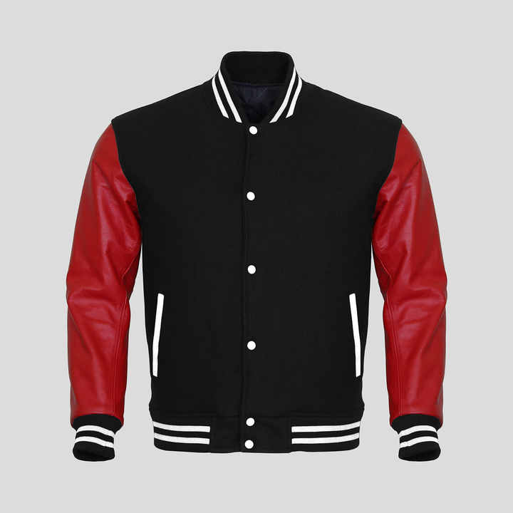 เสื้อแจ็คเก็ตวาร์ซิตี้ผู้ชายแบบสั่งทำ ราคาถูก อุ่นสบาย ตัวเสื้อทำจากผ้าขนสัตว์ แขนเสื้อหนัง มีฮู้ด แต่งลายปัก ไซส์ XL เสื้อผ้าตัวยาว