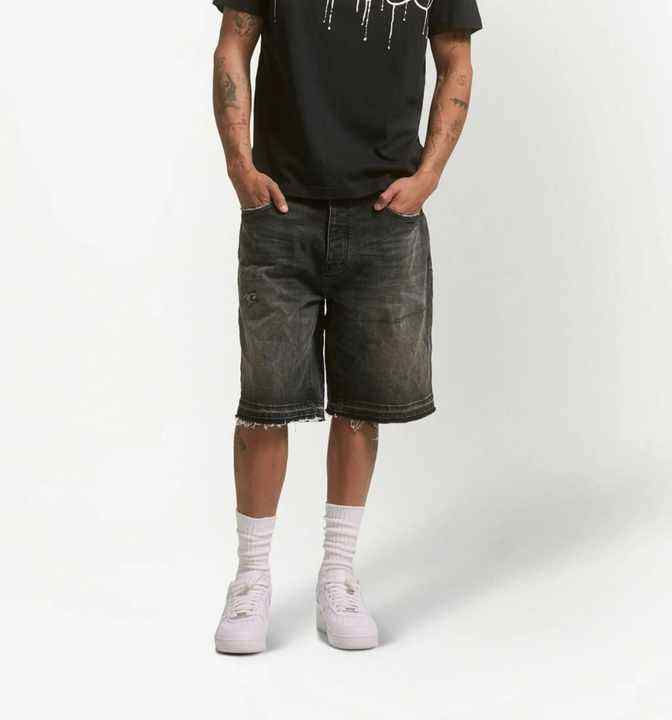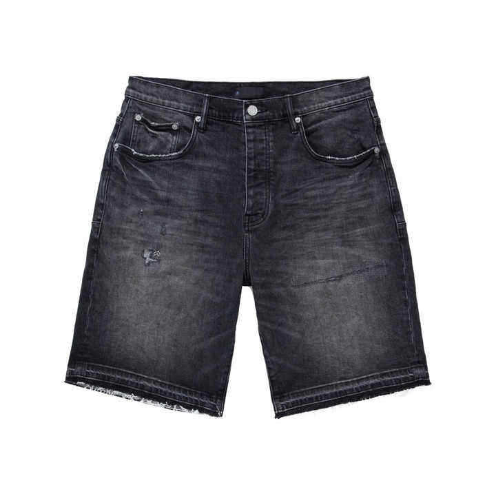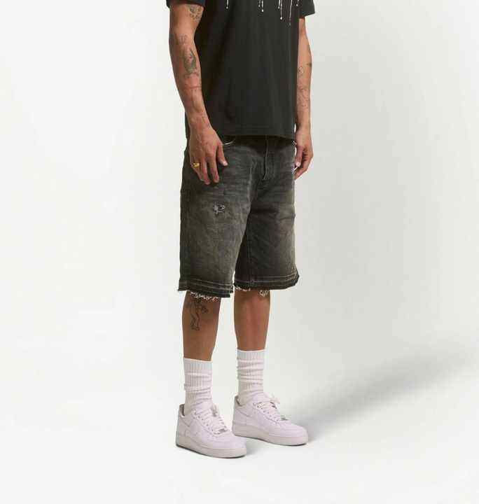 กางเกงขาสั้นผู้ชายสไตล์วินเทจ ย้อมสีแบบแอซิดวอช ผ้าฟลีซ แห้งเร็ว สตรีทแวร์ ขอบตัดแต่งแบบซันเฟด ดีไซน์ขาดๆ แบบจ็อกเกอร์
