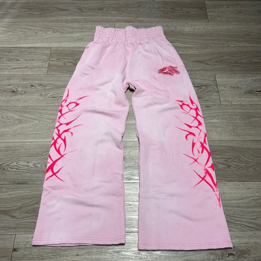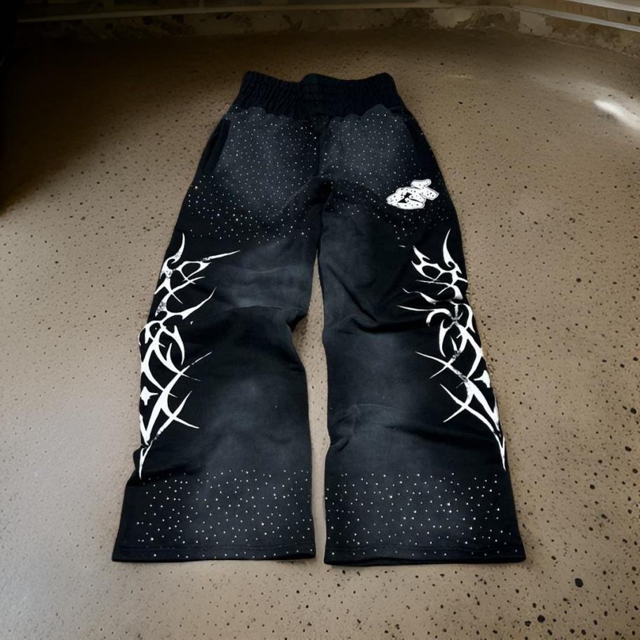 กางเกงวอร์มผู้ชายสไตล์วินเทจ ล้างสีแบบแอซิด แต่งคริสตัล ทรงขาบาน พิมพ์ลายสกรีน เอวยางยืด จีบด้านหน้า กันน้ำ ระบายอากาศได้ดี